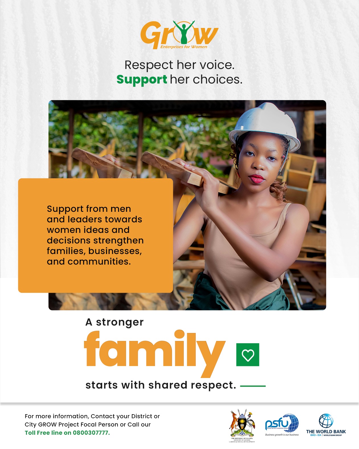 ​By focusing on “Respecting her voice” and “Supporting her choices,” the GROW Project aims to ensure that Ugandan women are not just participants in the economy, but leaders of it.